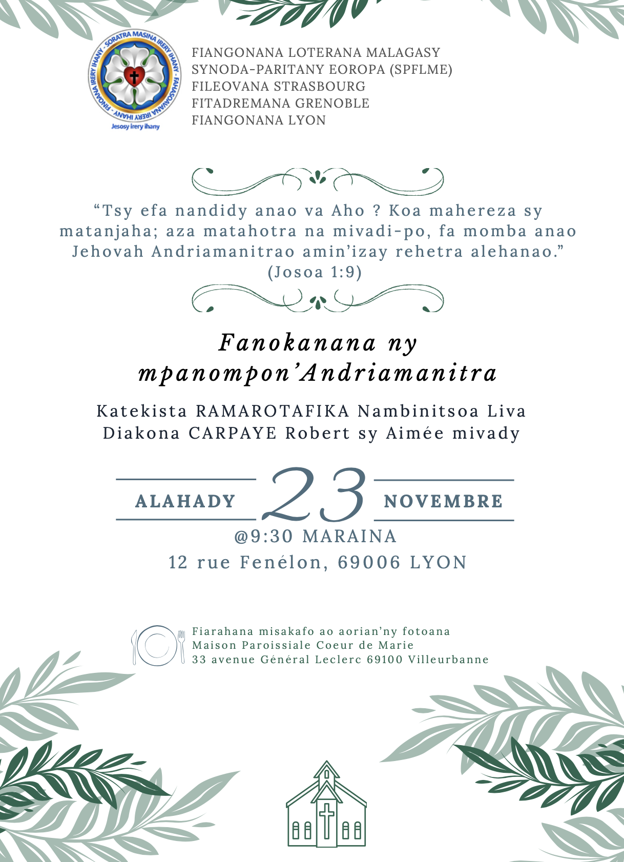 1.2 Pour les paroissiens de la FPMA Lyon (Repas et cultes)