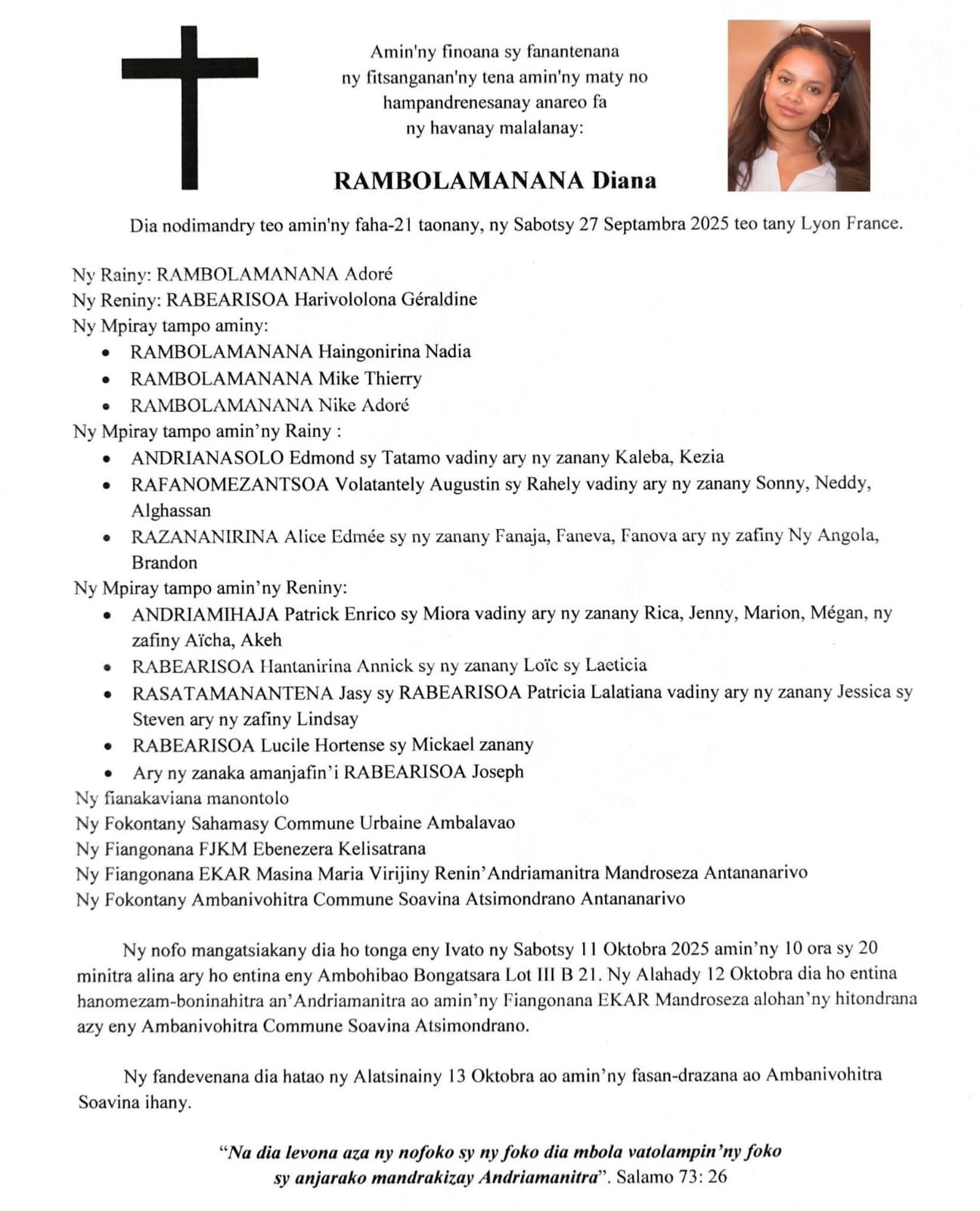 Pour participer à l'aide : https://www.gofundme.com/f/soutien-a-la-famille-de-diana-rambolamanana